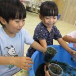 2025年8月27日 / 最終更新日時 : 2025年10月17日 kashiwabara 4・5歳児クラス 「寒天あそび」 楽しみにしていた「寒天遊び」 当日は雨のため、お部屋で遊ぶことになりました。 タッパーや水風船の中で固めた寒天、それぞれ違った面白さや楽しさがあったようです。そして何よりも寒天の感触や握ったときの感触を思う存分楽しんで […]