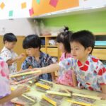 2025年8月28日 / 最終更新日時 : 2025年10月17日 kashiwabara 夏祭りごっこ 夏まつりごっこを開催しました。 2~5歳児クラスは出店をしました。2歳児クラスは金魚すくい屋さん、3歳児クラスは焼きそば屋さん、4歳児はたこ焼き屋さん、5歳児クラスはチョコバナナ屋さんになりました。 「いらっしゃいませ~ […]