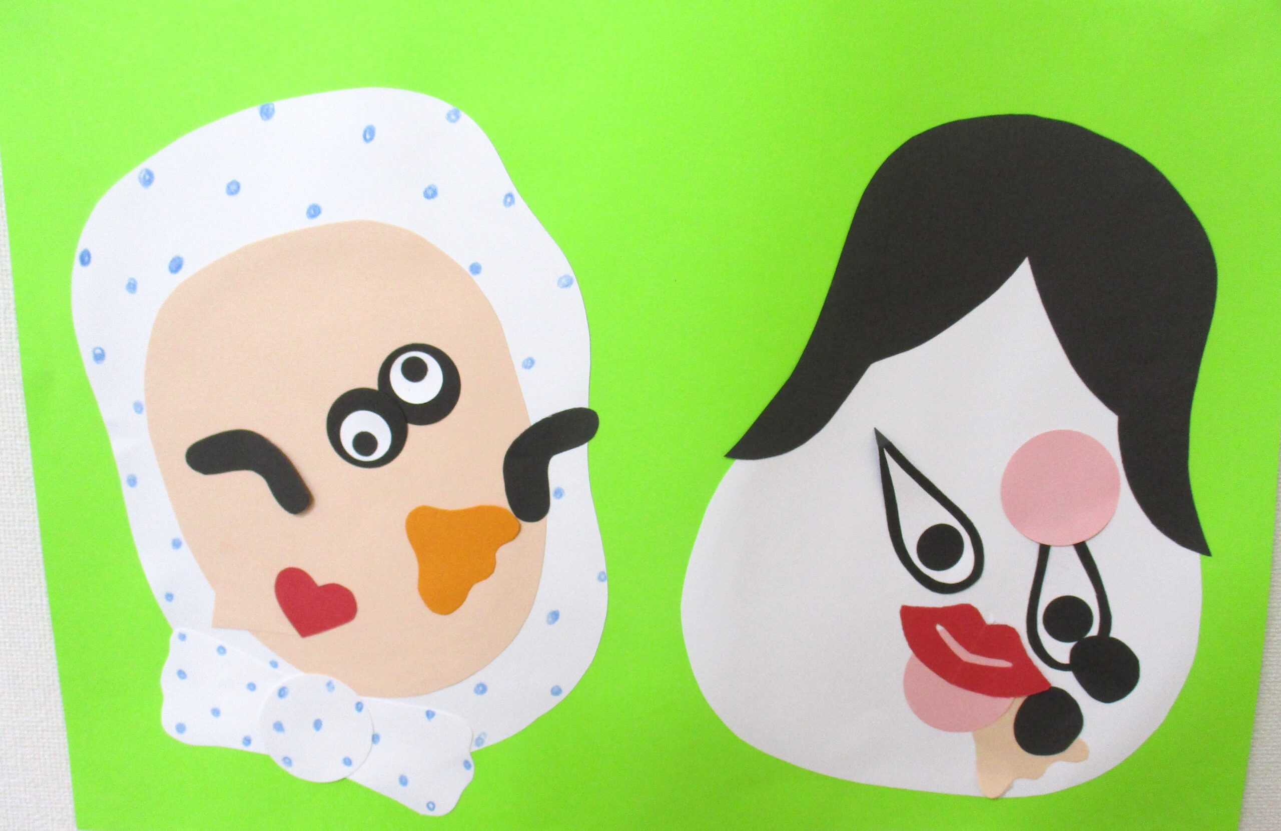 0歳児クラスは「福笑い」の製作 表情豊かな楽しい作品になりました。