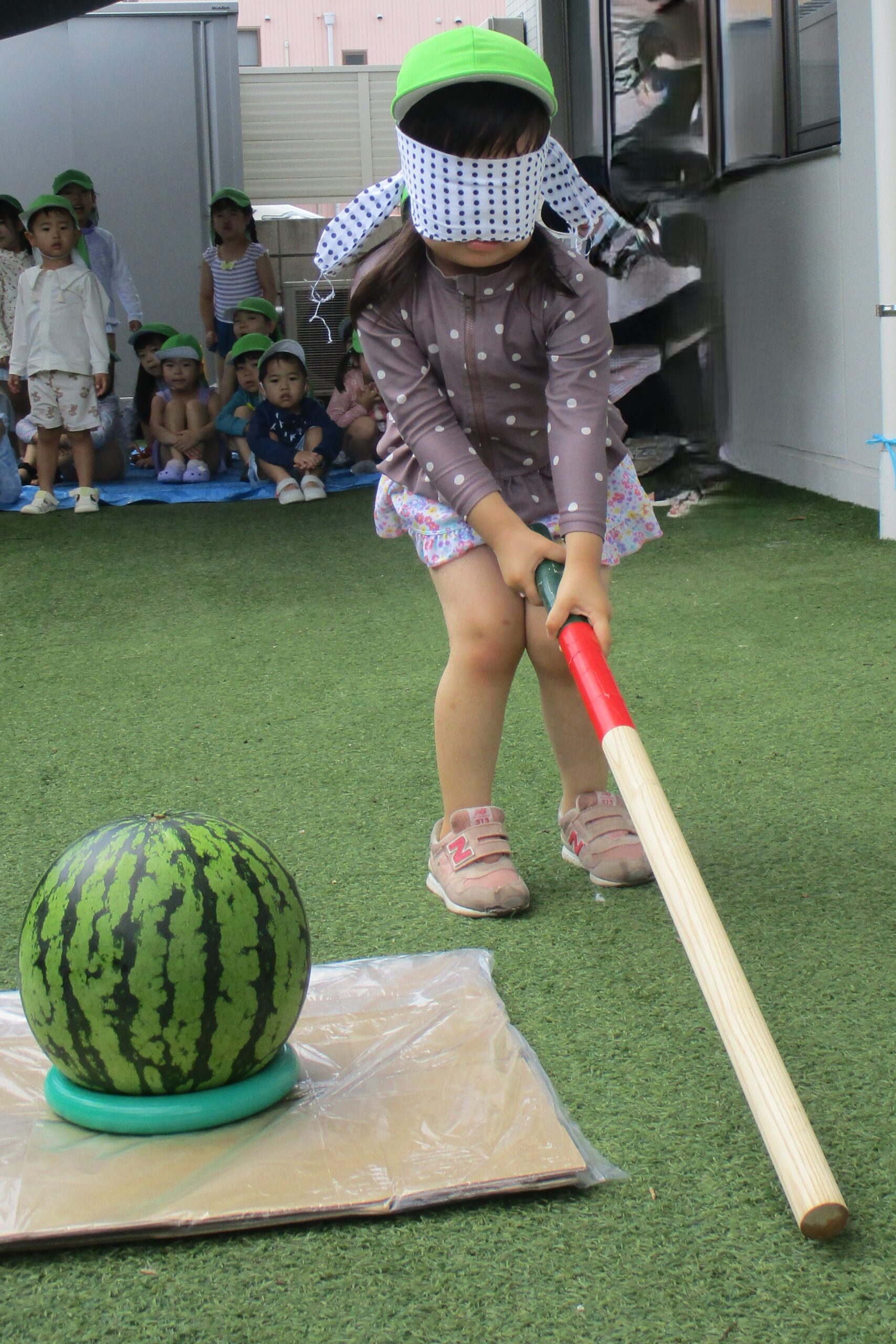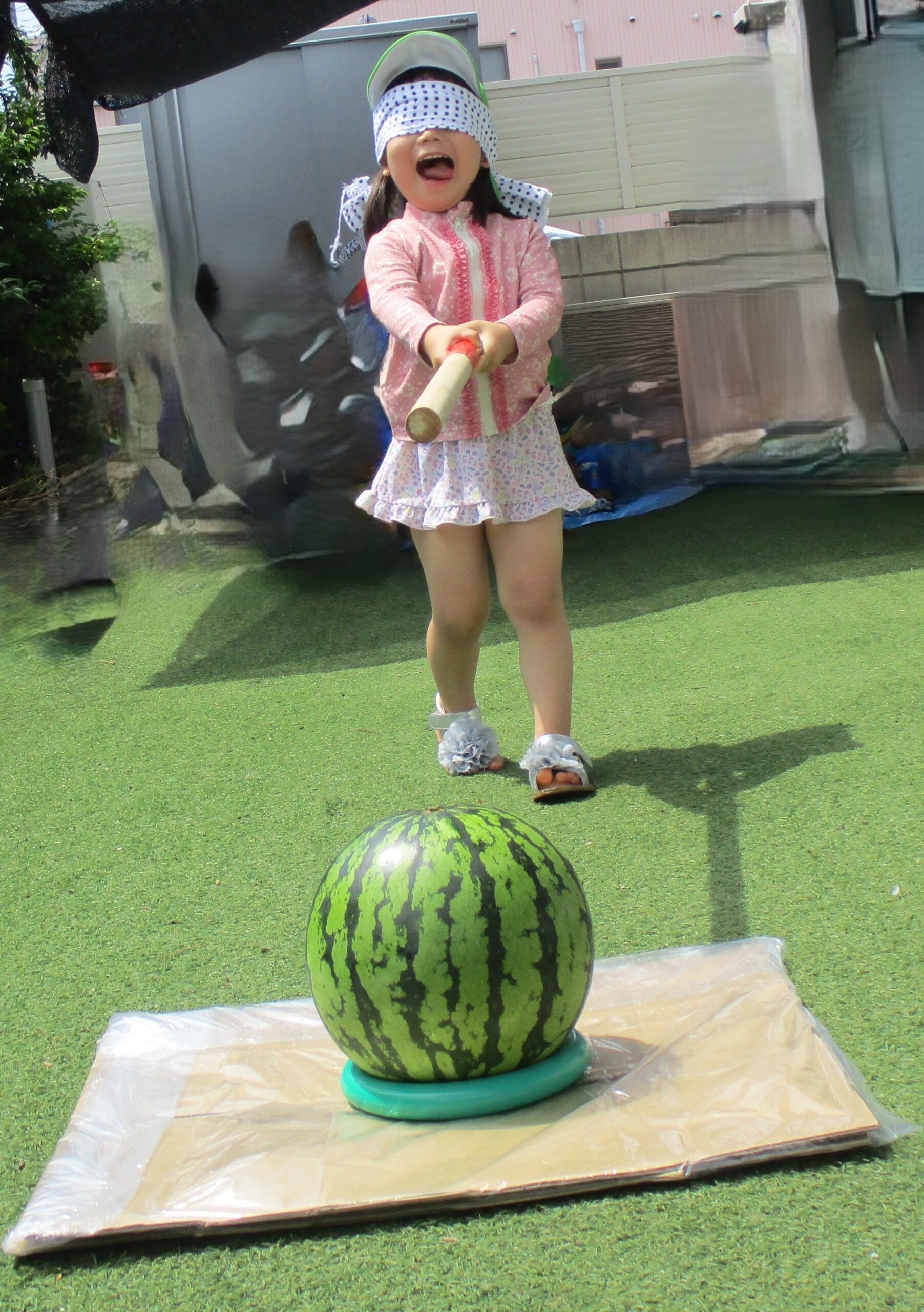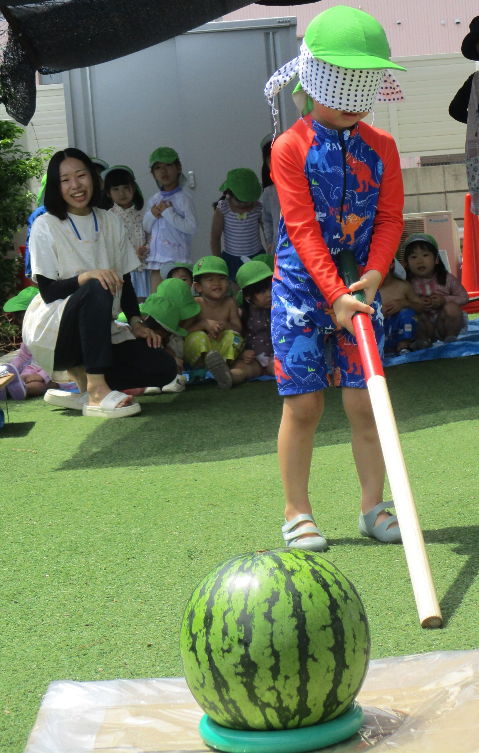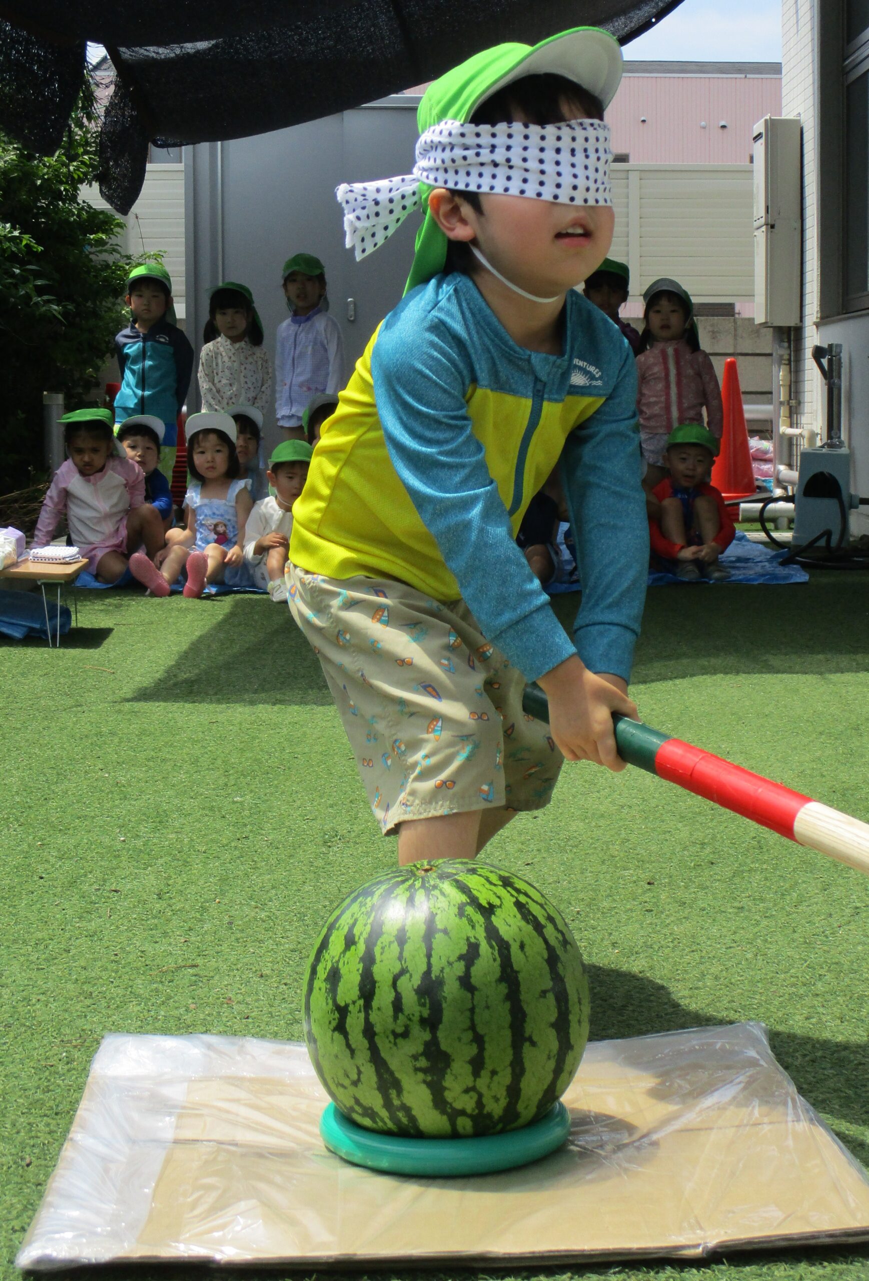 夏の風物詩のスイカ割りを楽しみました。