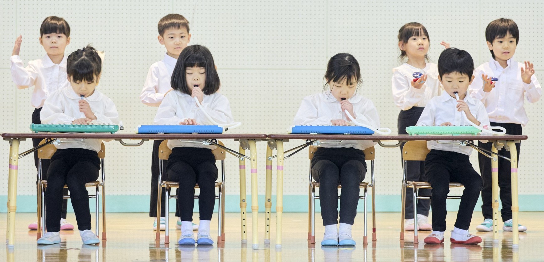 5歳児はピアニカに挑戦しました。お友だちと心を合わせて演奏しました。