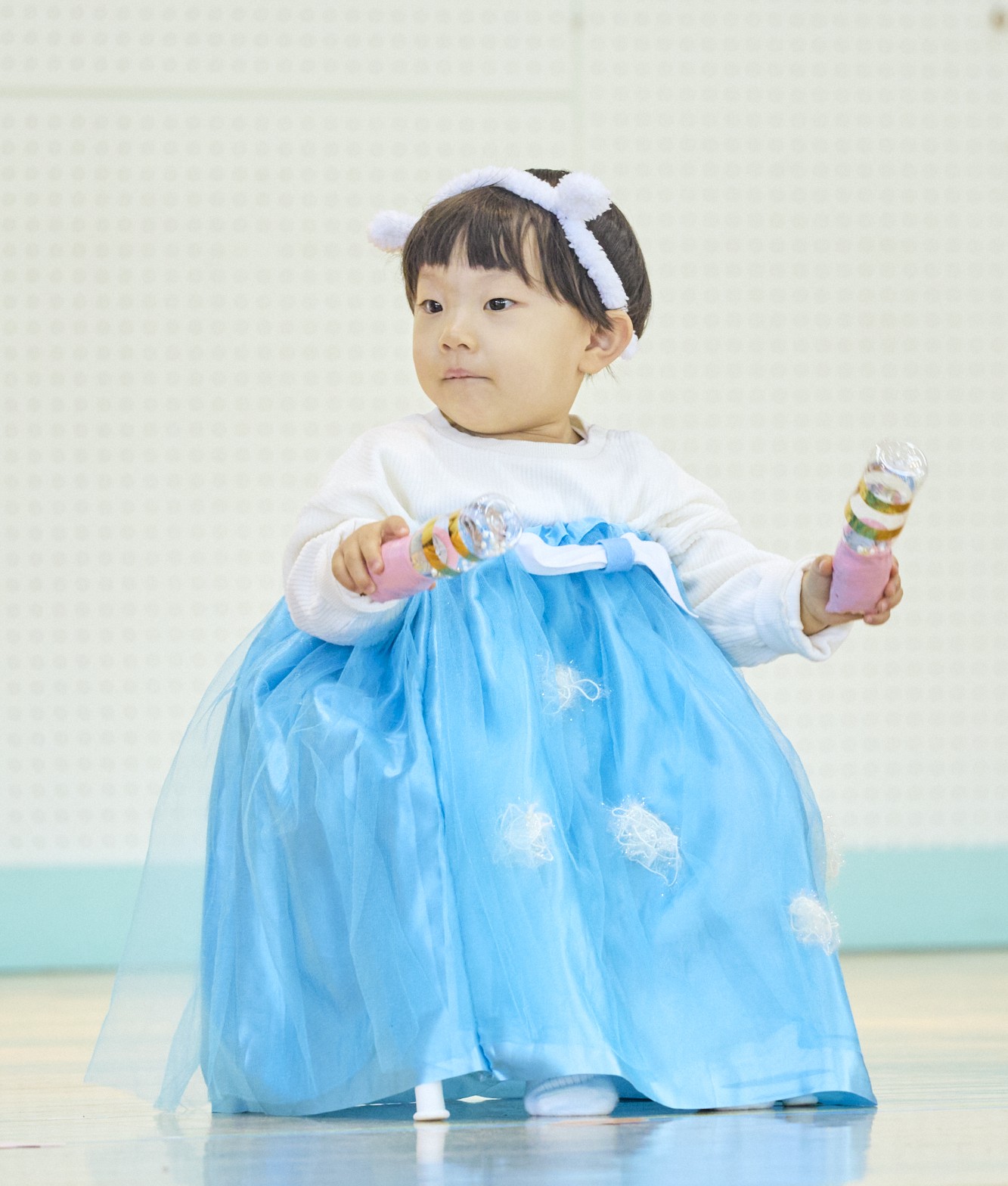かわいい衣装に身を包み、音楽にのってマラカスを振りました。