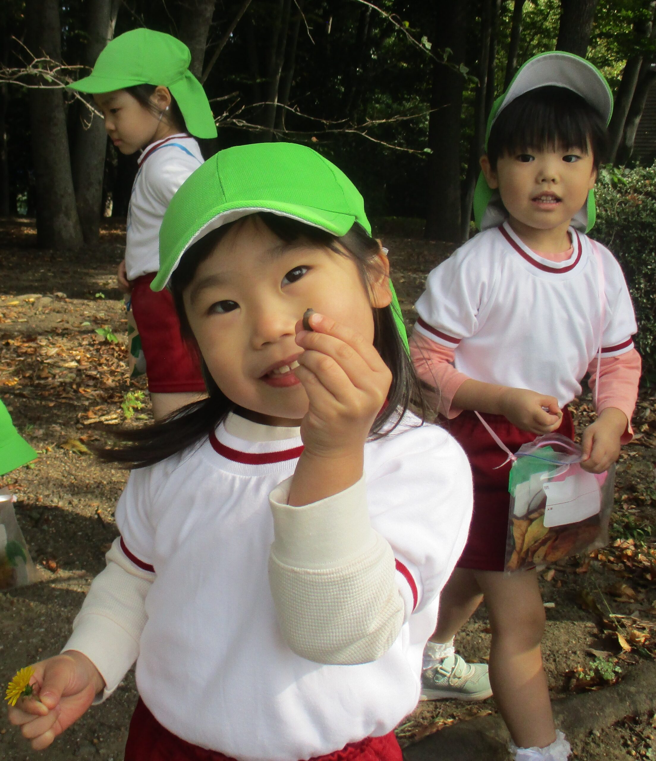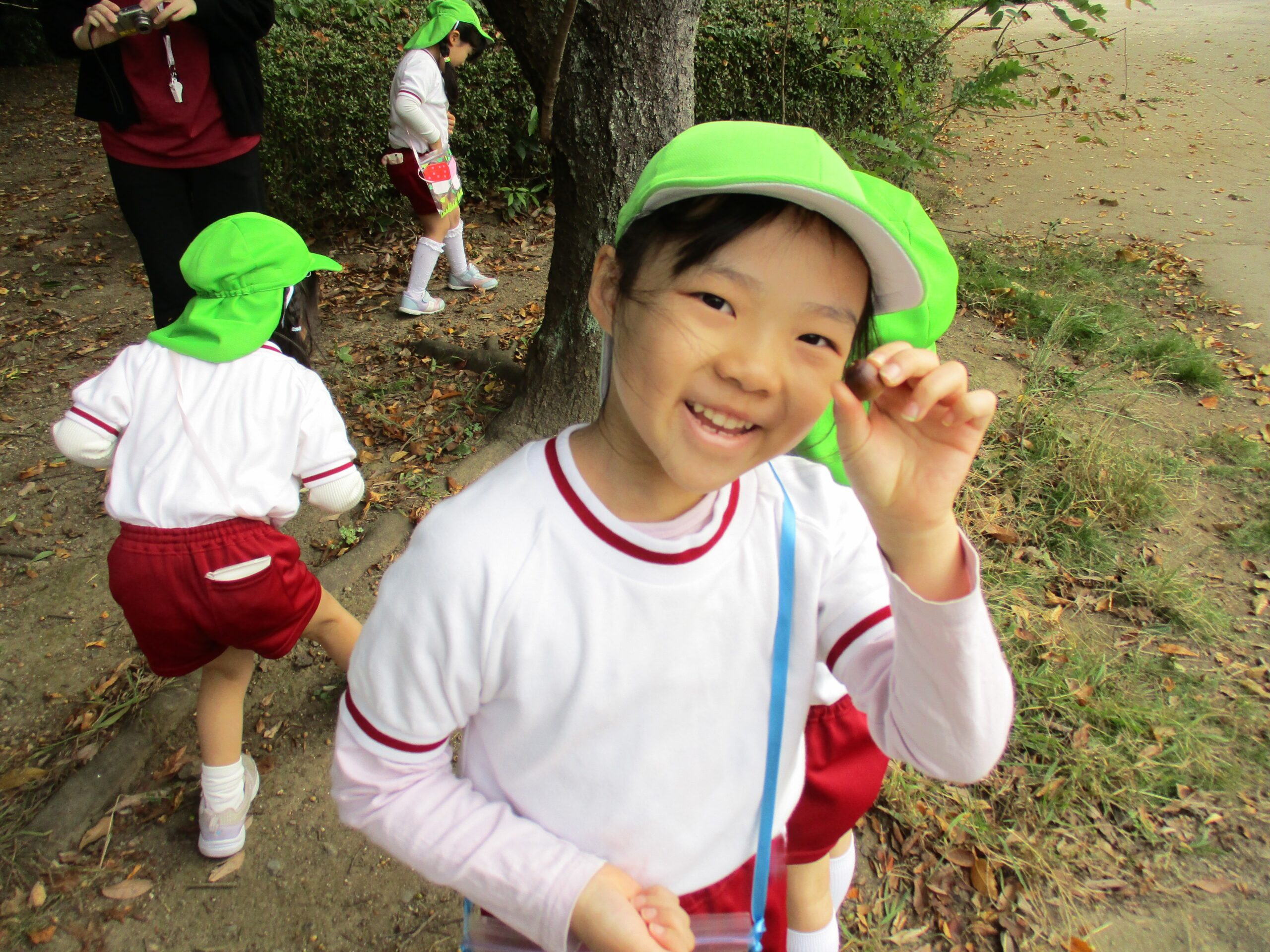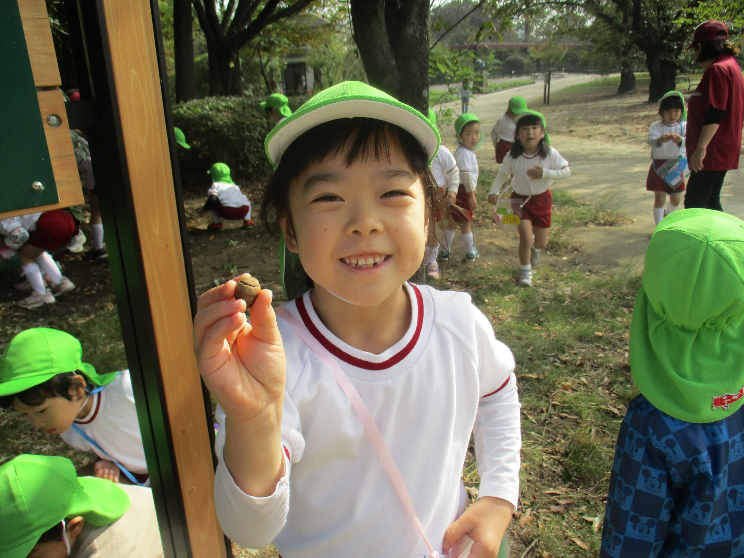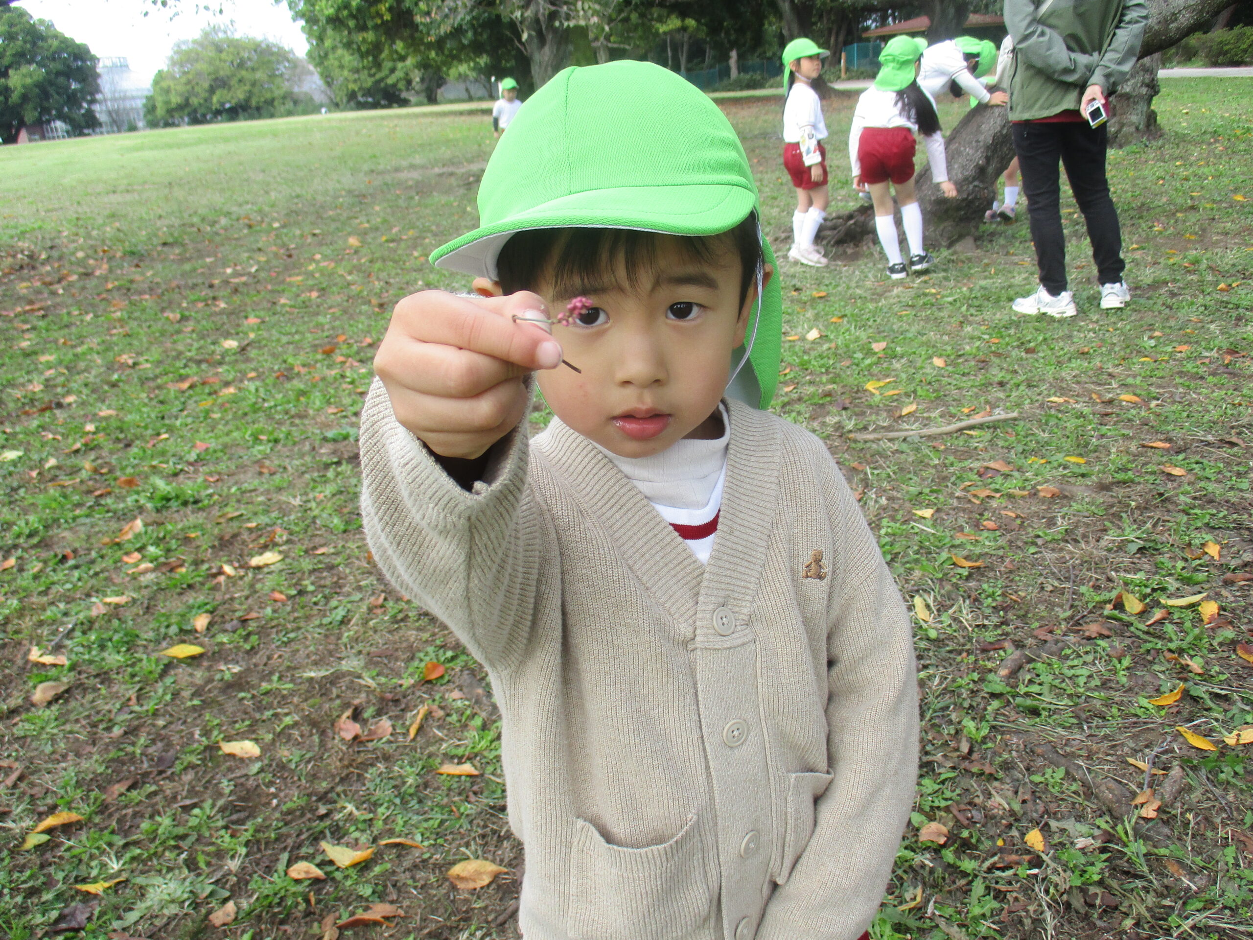 秋の自然物を探したり、ゲームをしたり、広場でたくさん遊びました。