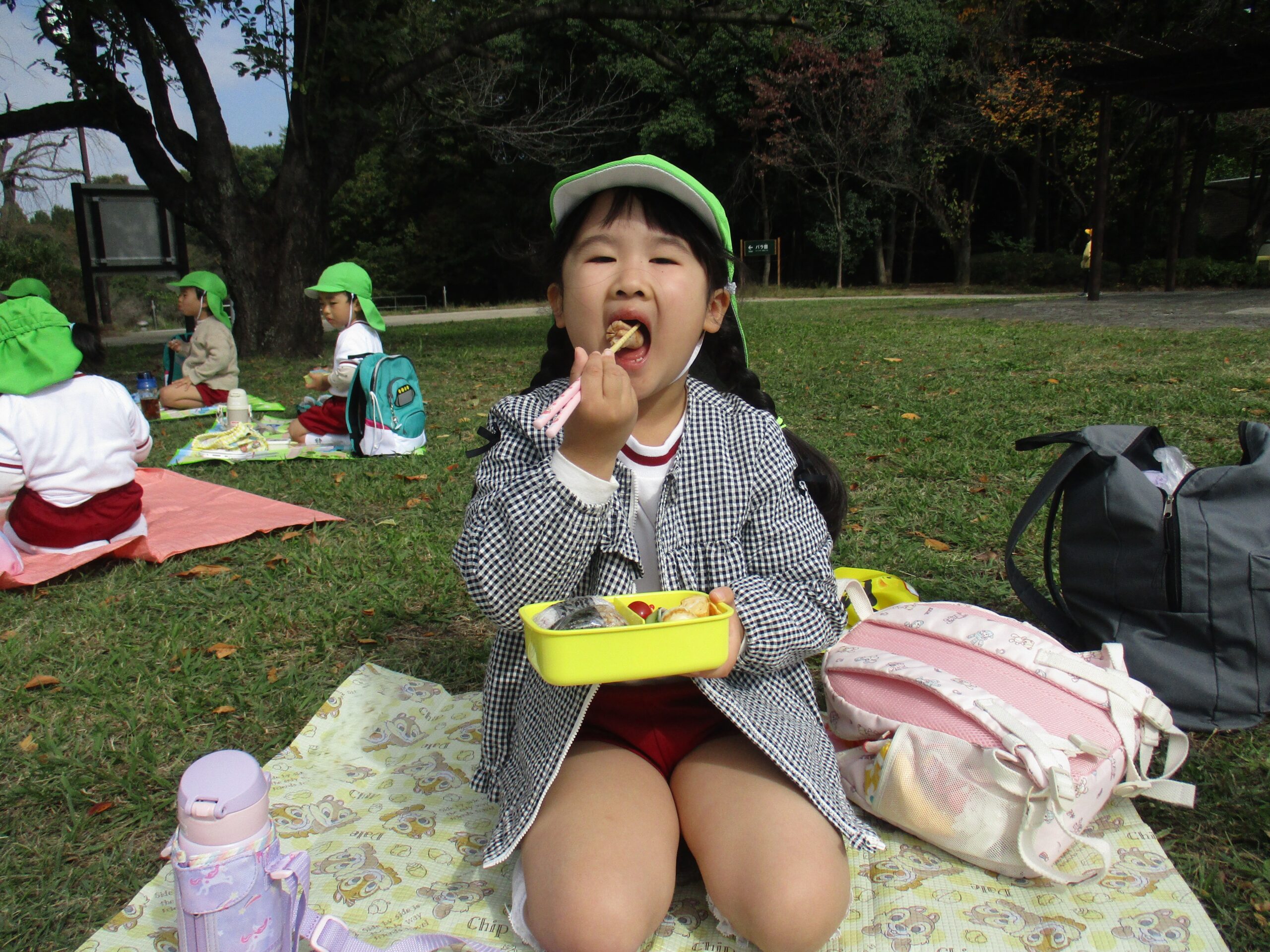 お外で食べるお弁当はまた一段とおいしく、笑顔がこぼれていました。