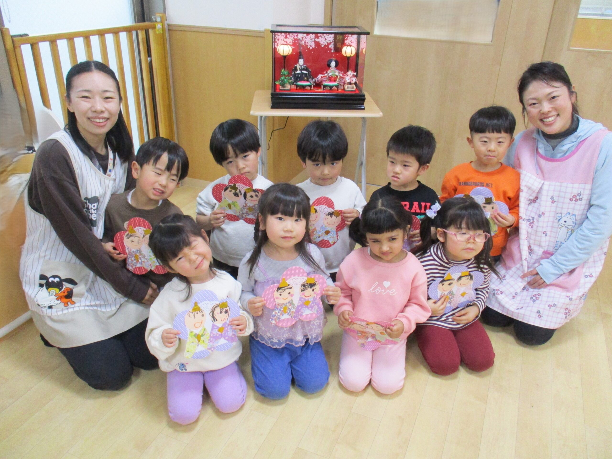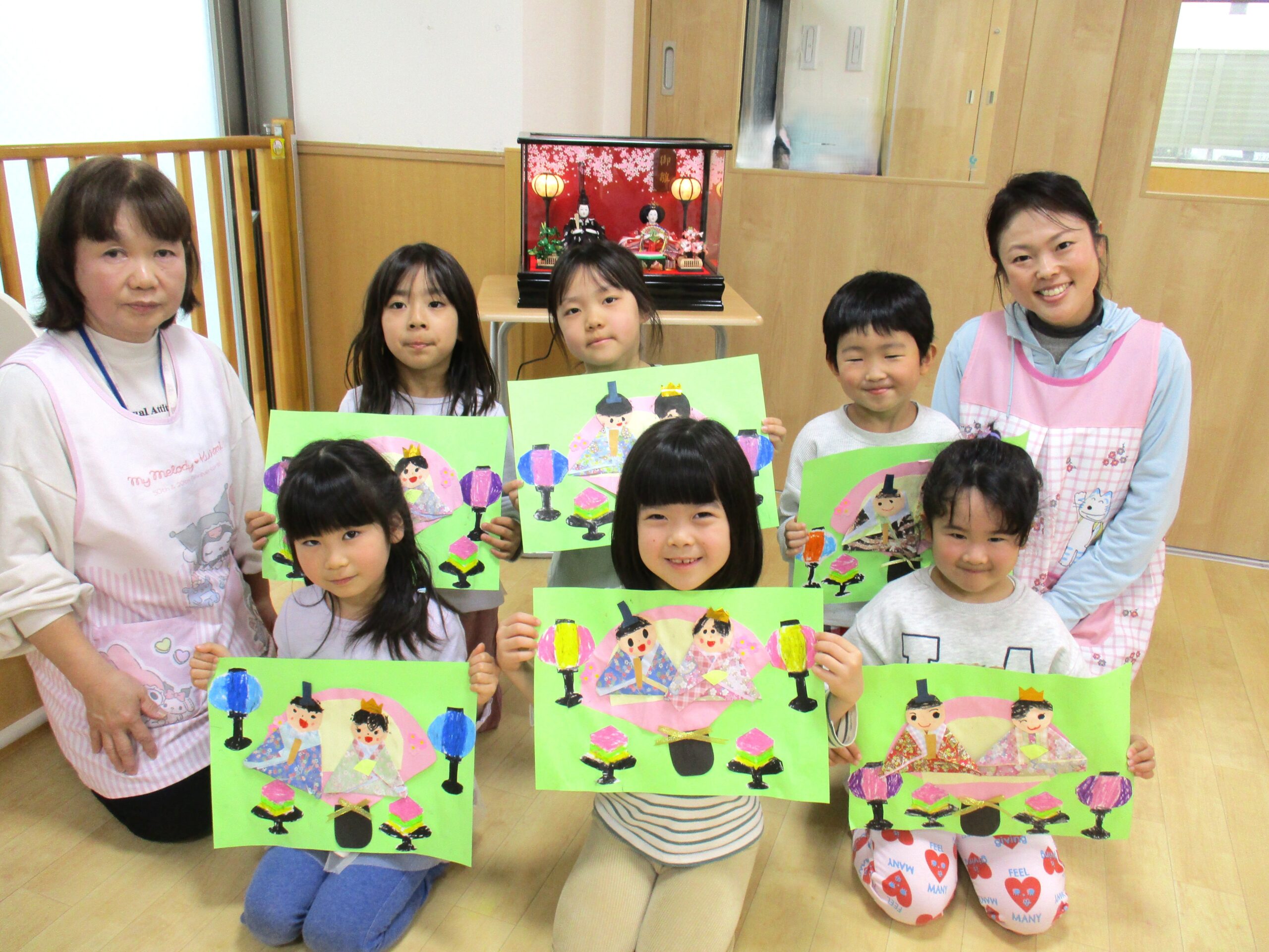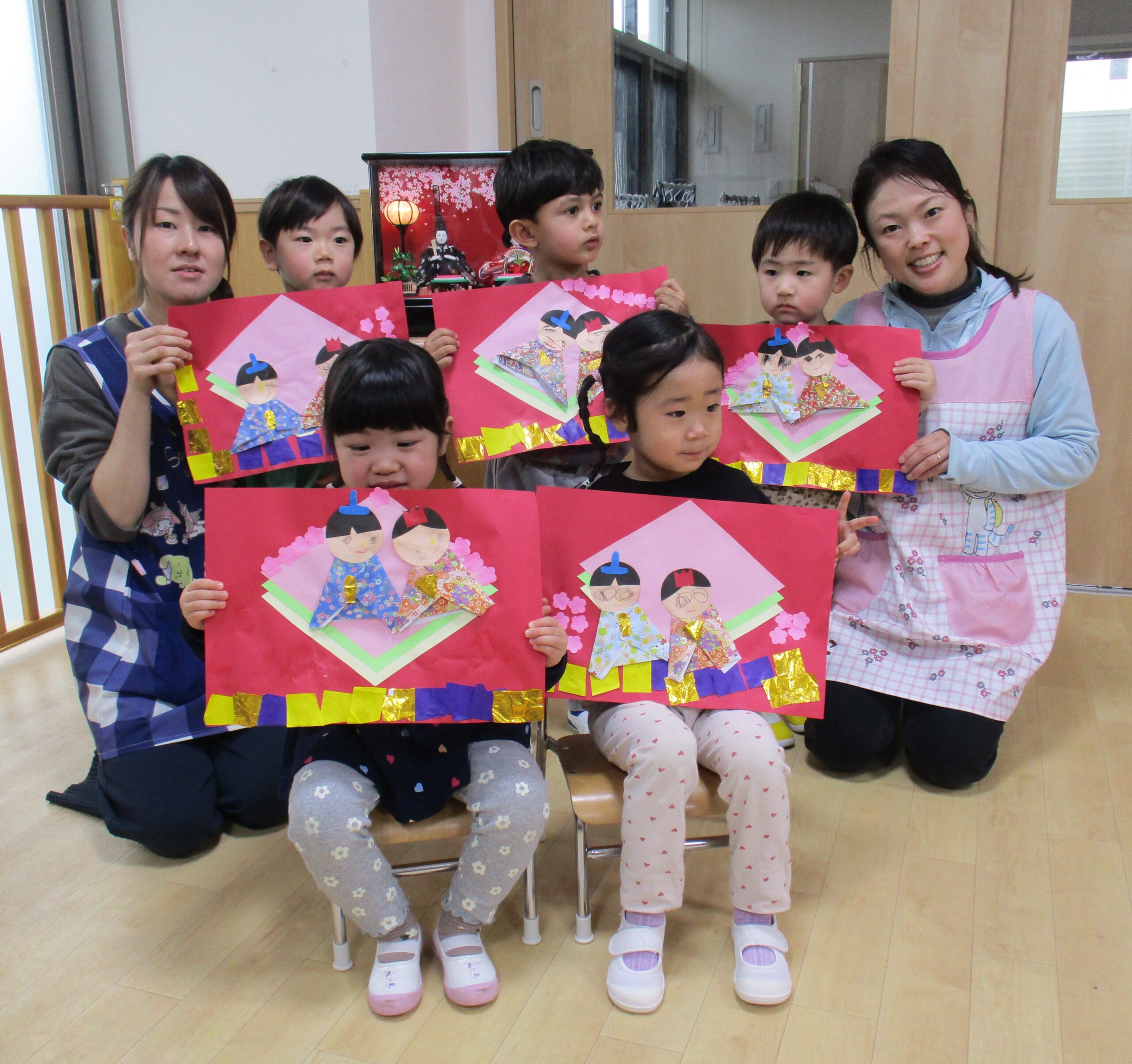 3月3日はひな祭りの会をしました。ひな祭りの由来を聞いて、各クラスの製作を発表しました。