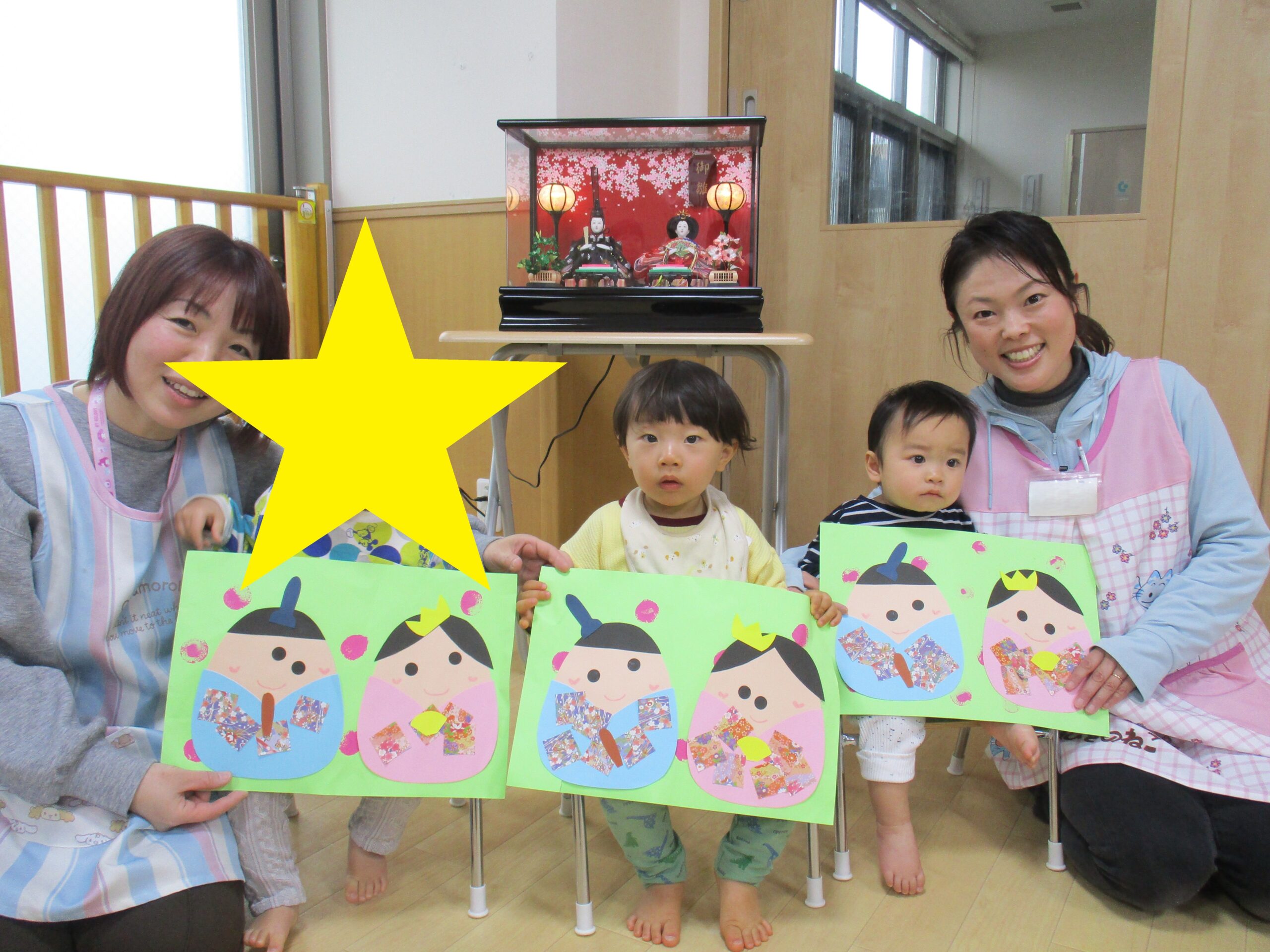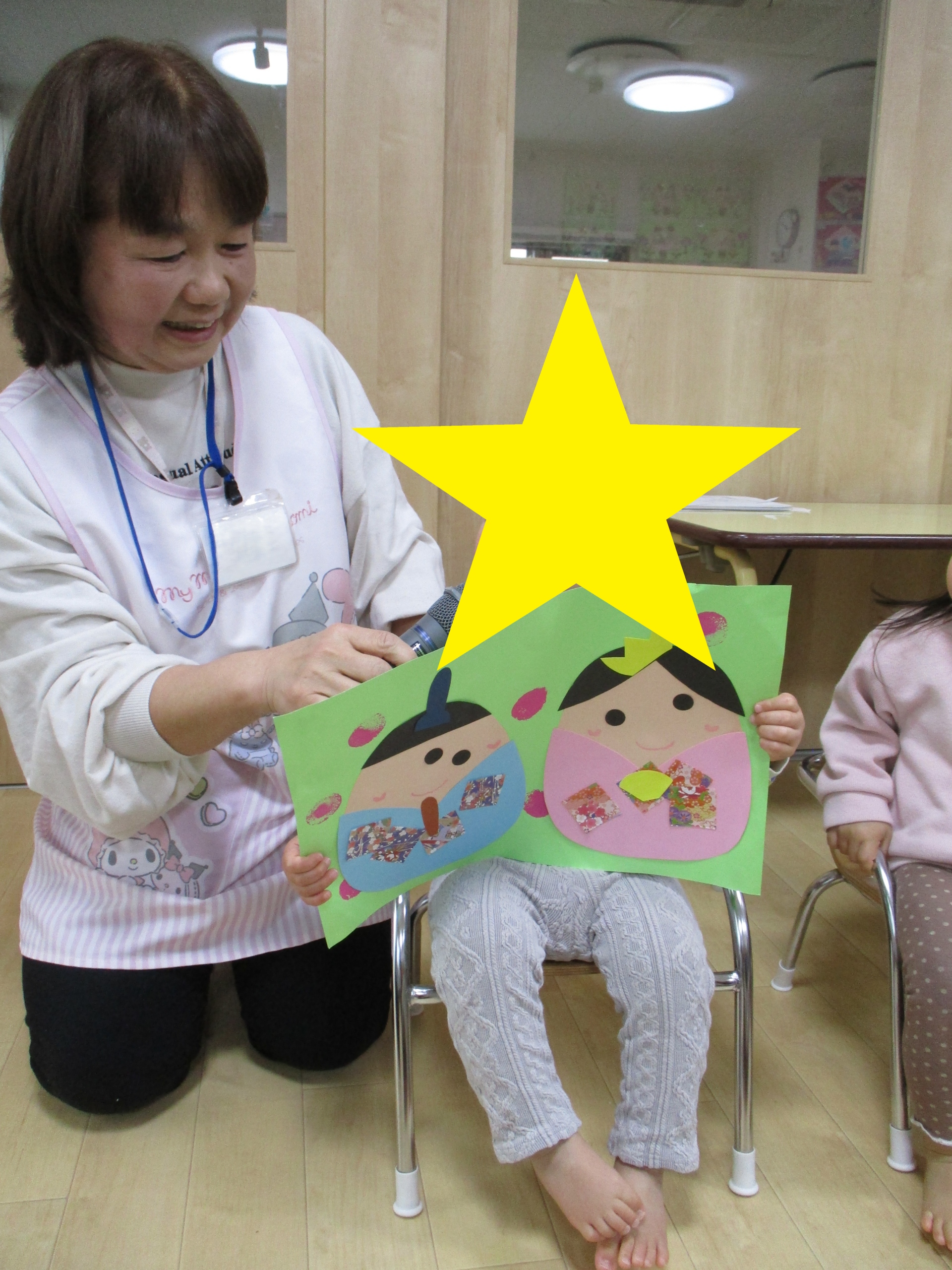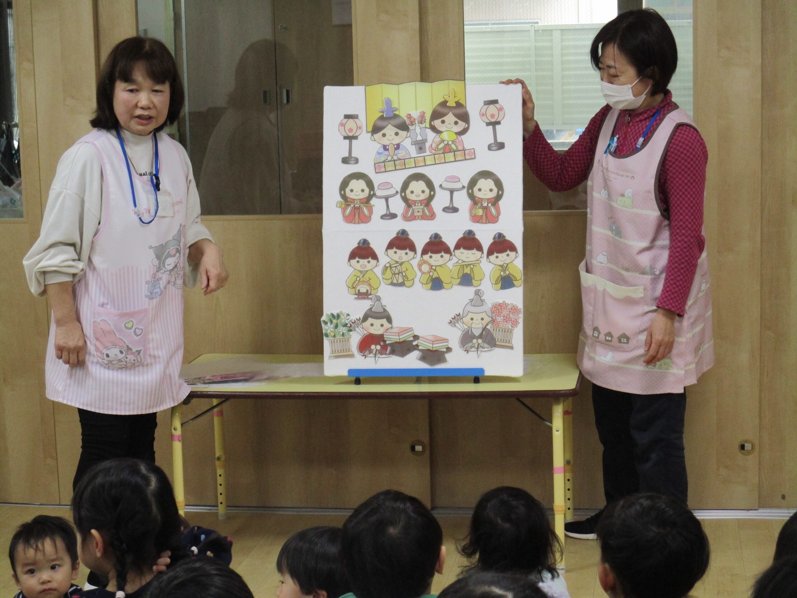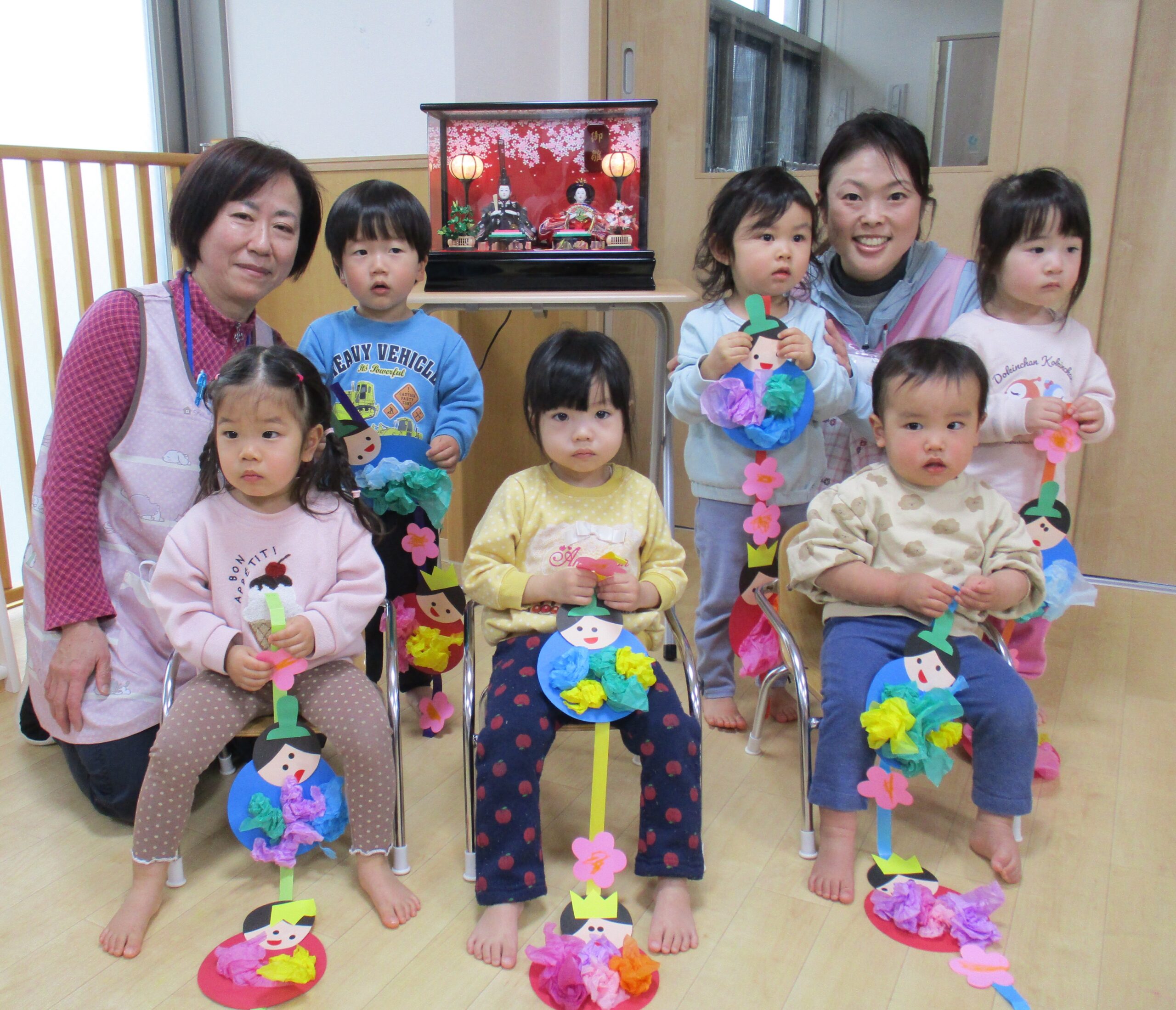 3月3日はひな祭りの会をしました。ひな祭りの由来を聞いて、各クラスの製作を発表しました。