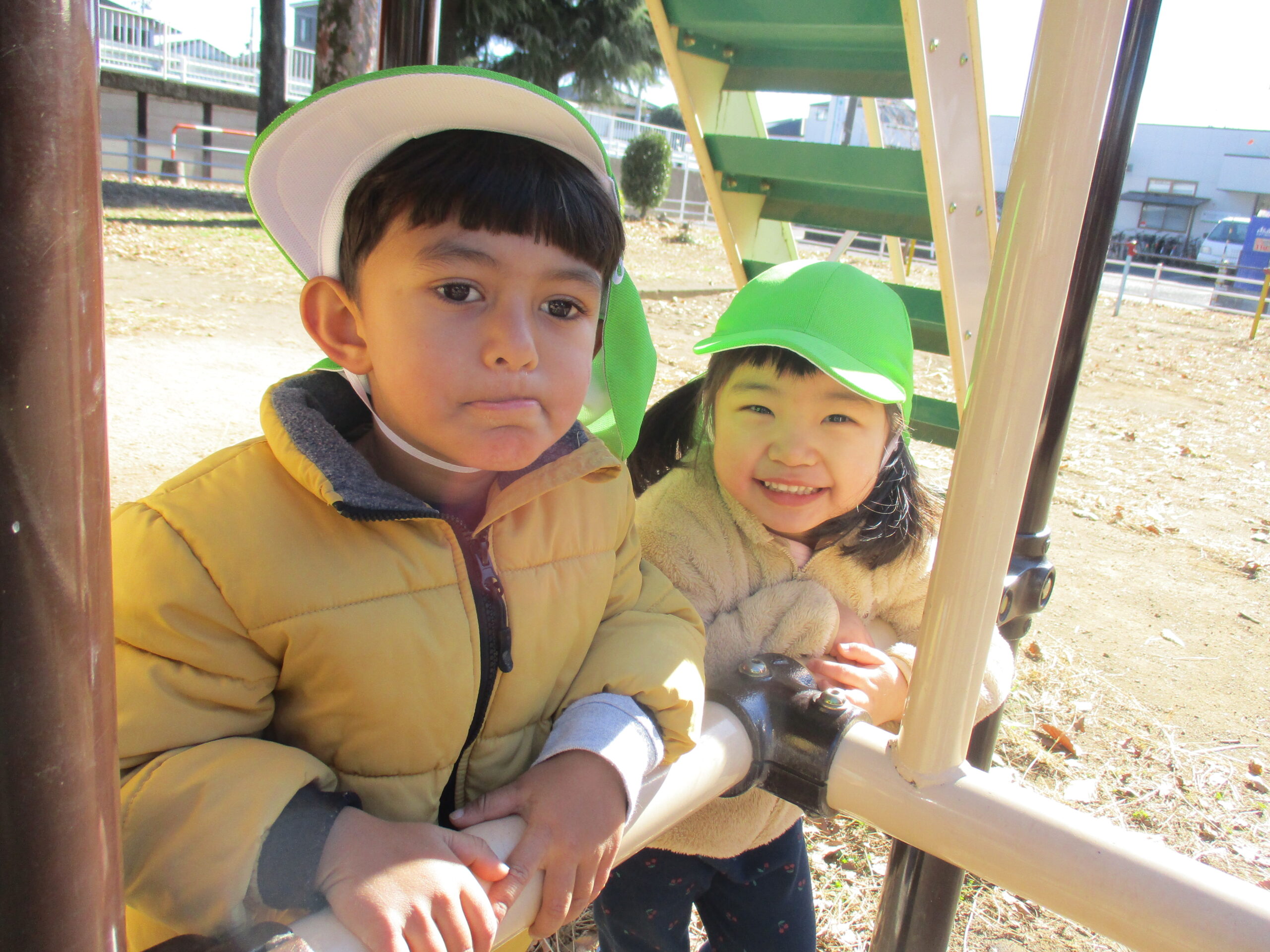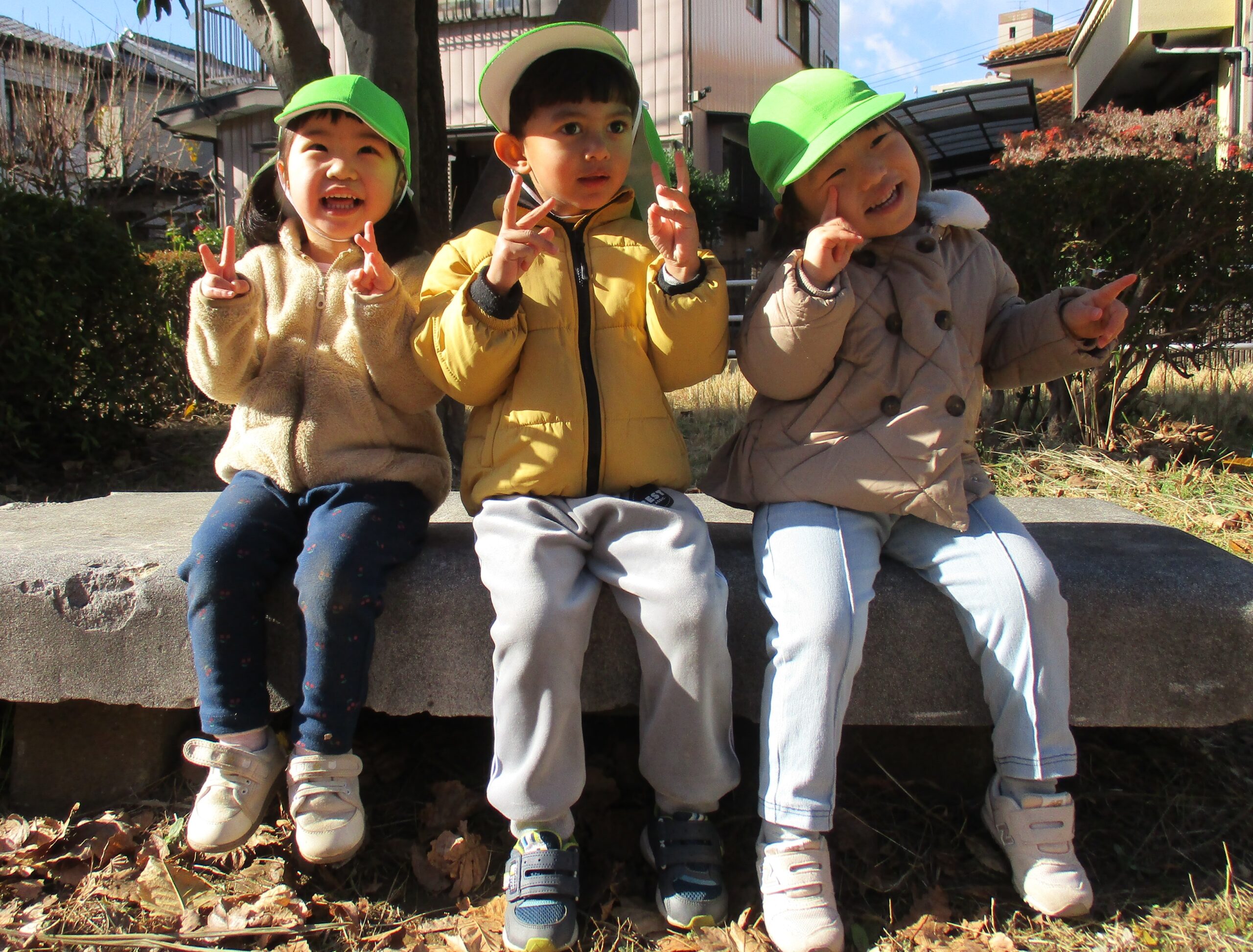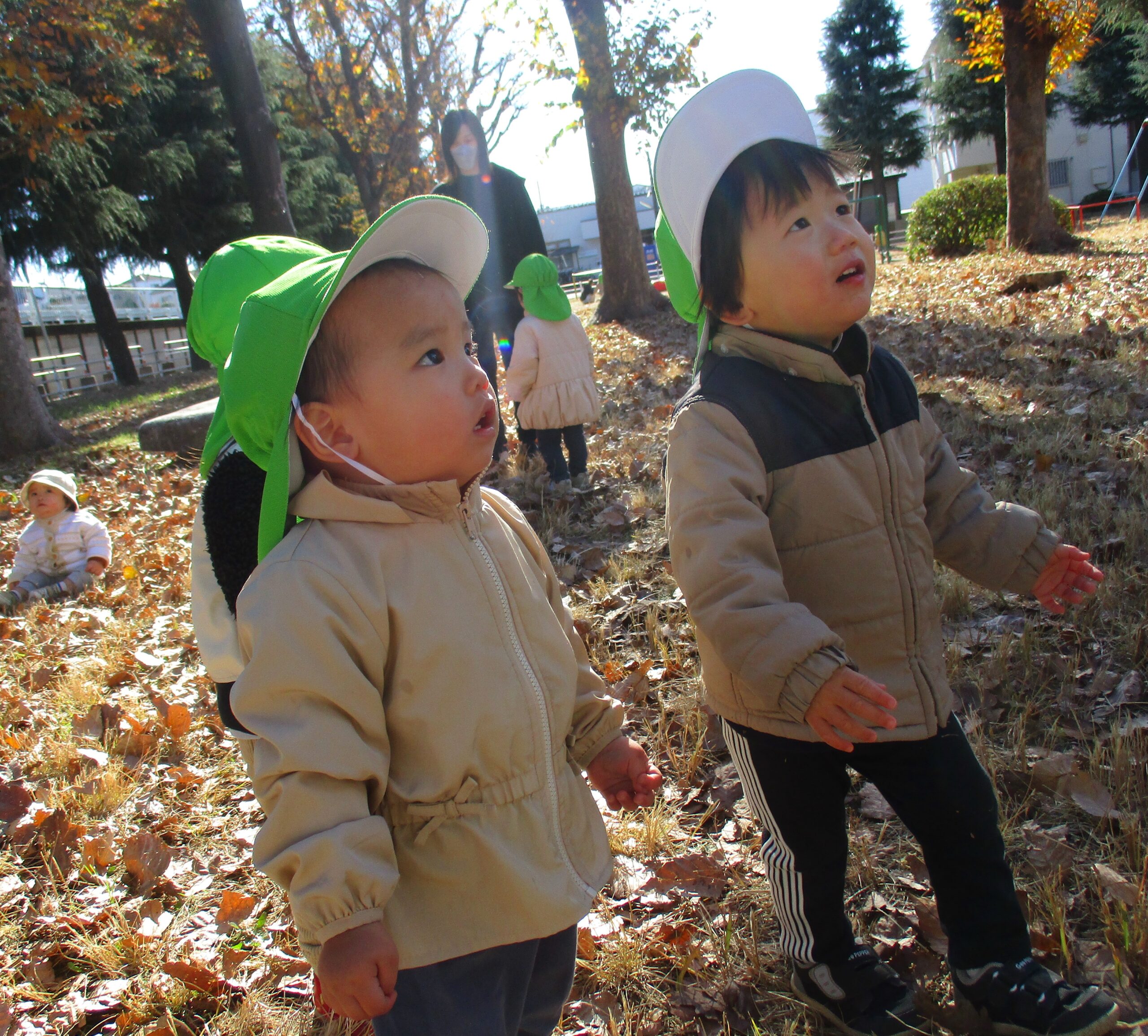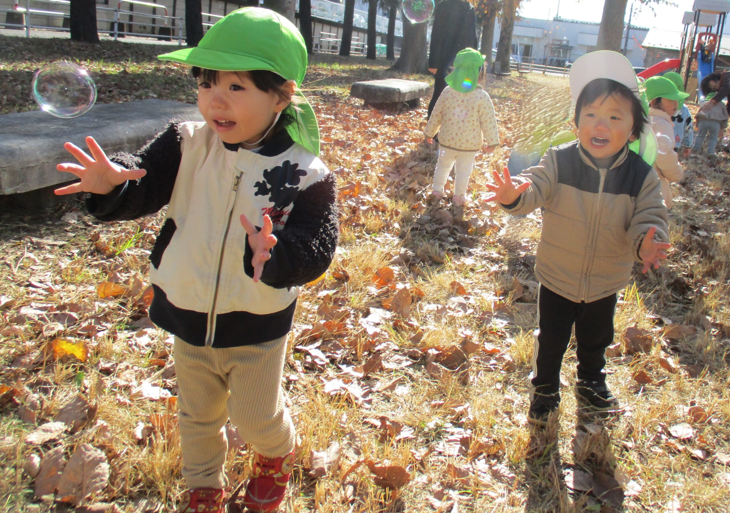寒さに負けず、公園で元気いっぱい遊んでいます。お友だちと追いかけっこをしたり、落ち葉遊びをしたり、みんなと仲良く遊び、笑顔が溢れるいますね。