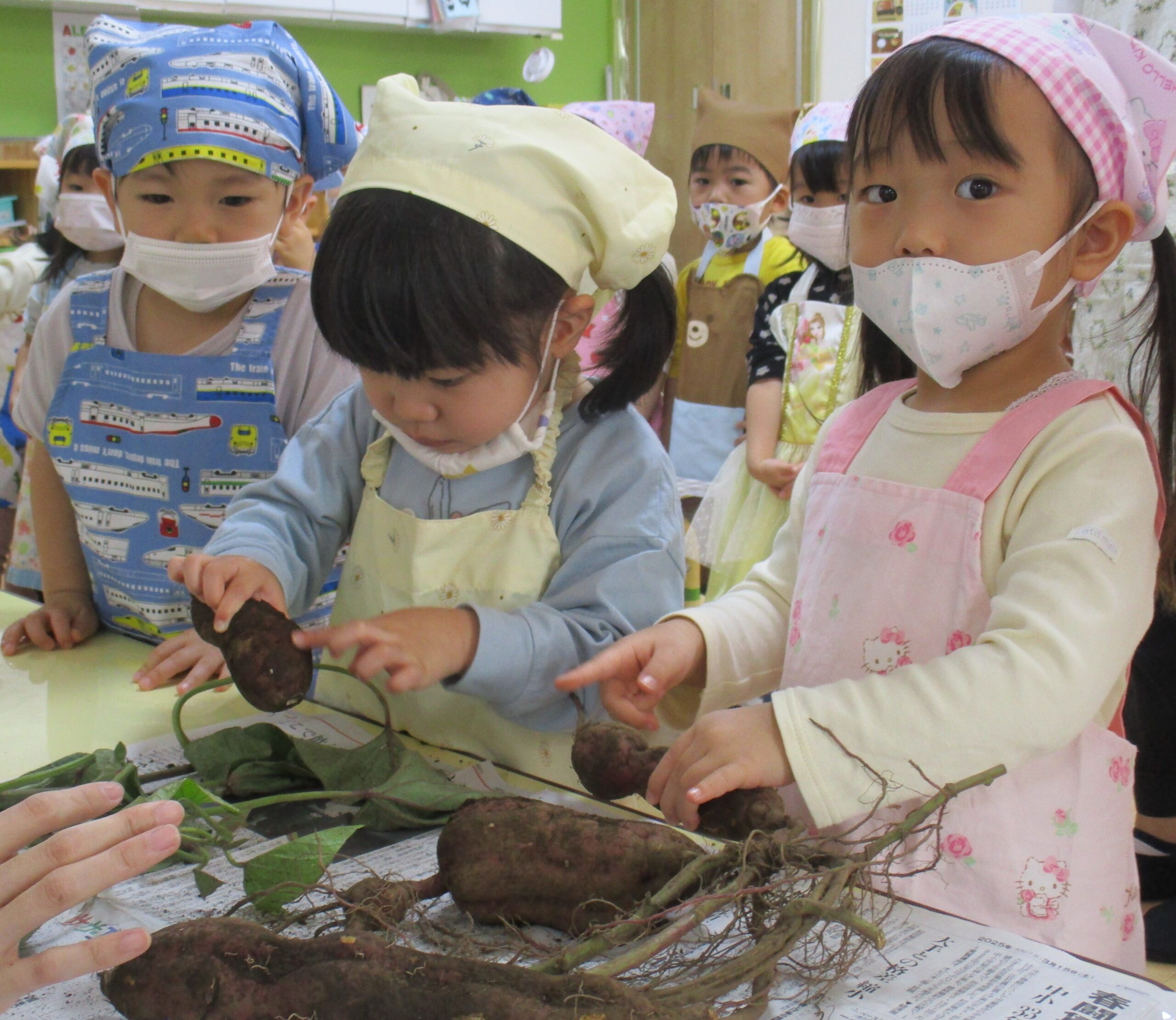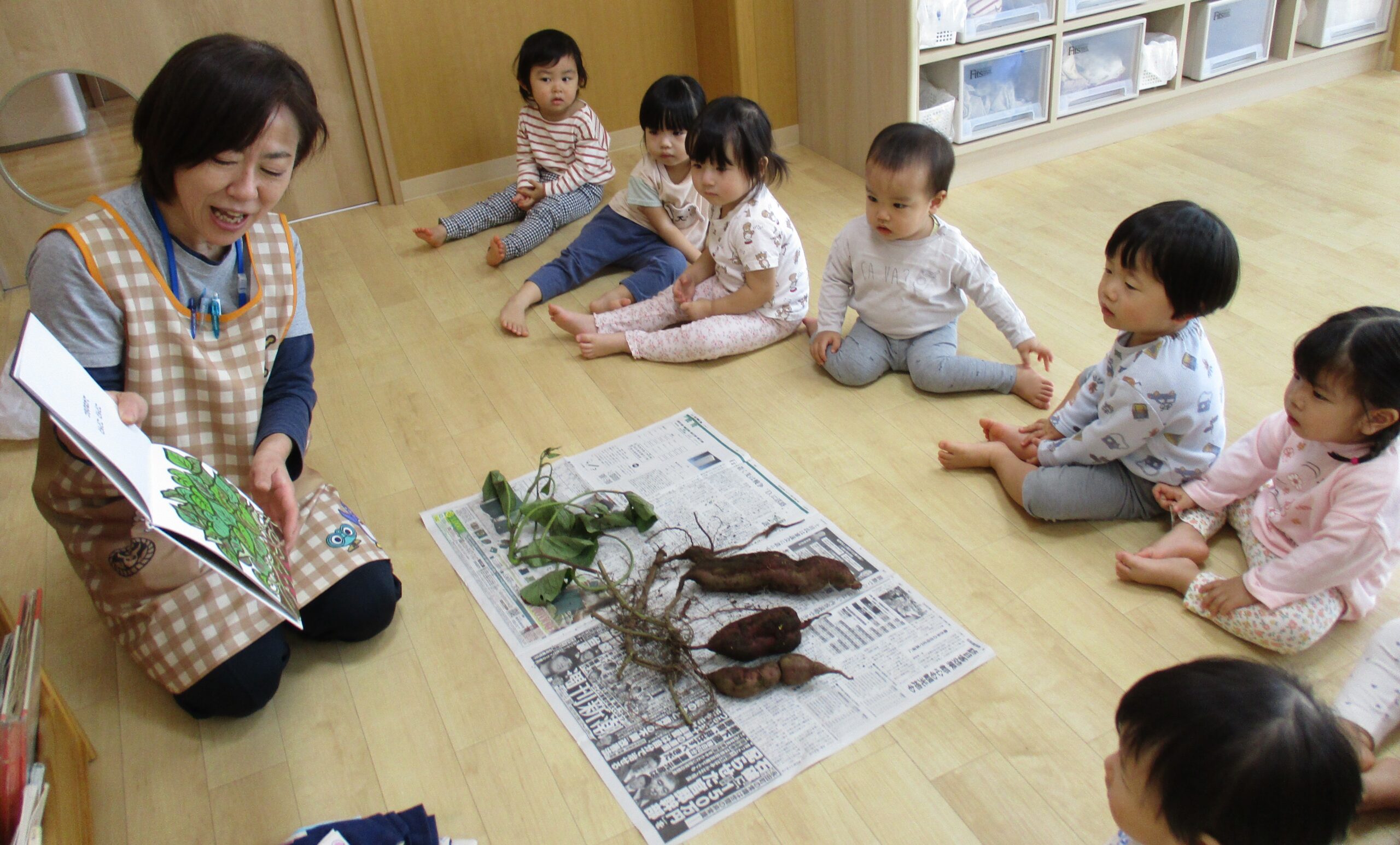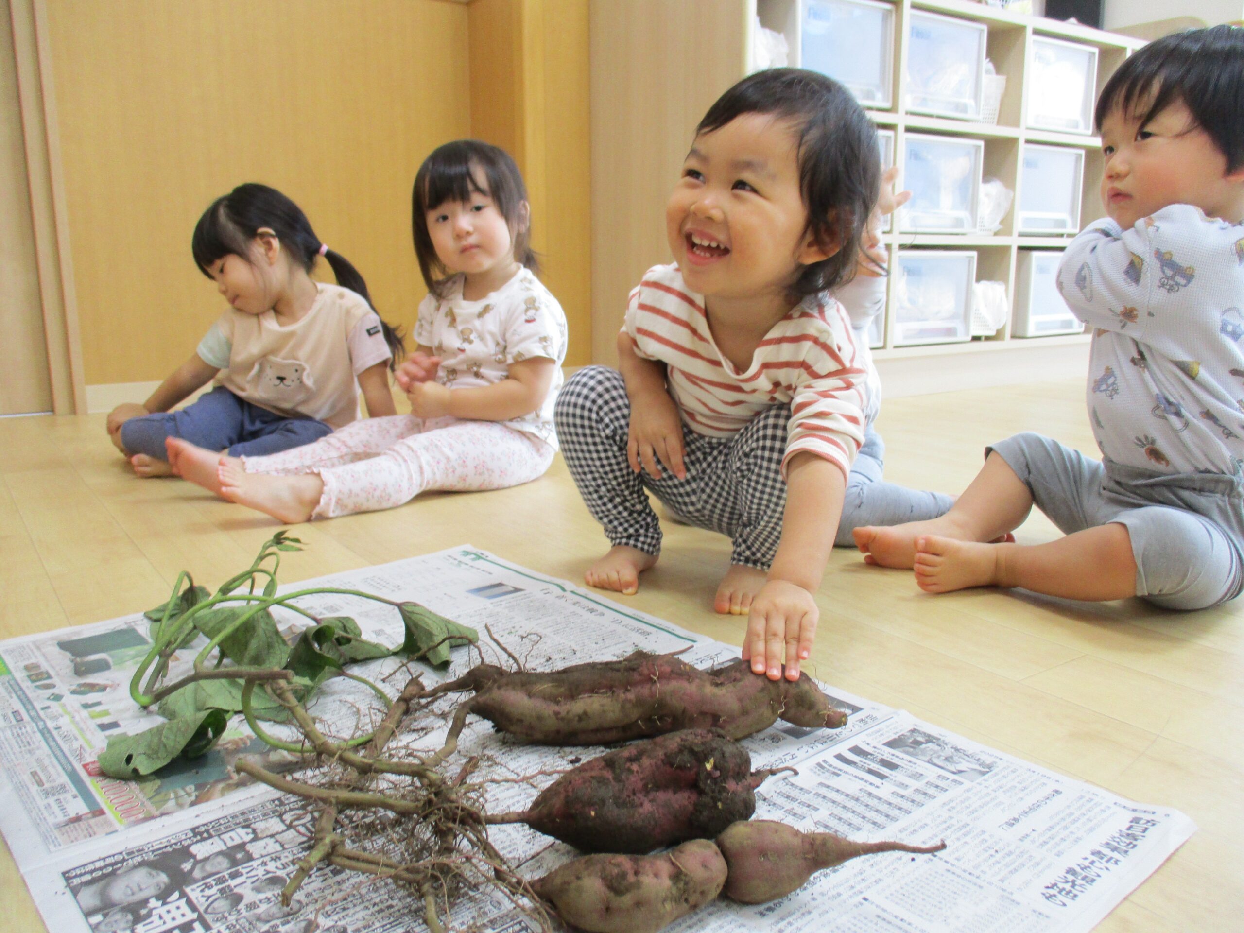 0・1歳児クラスのお友だちもさつまいもに触れました。