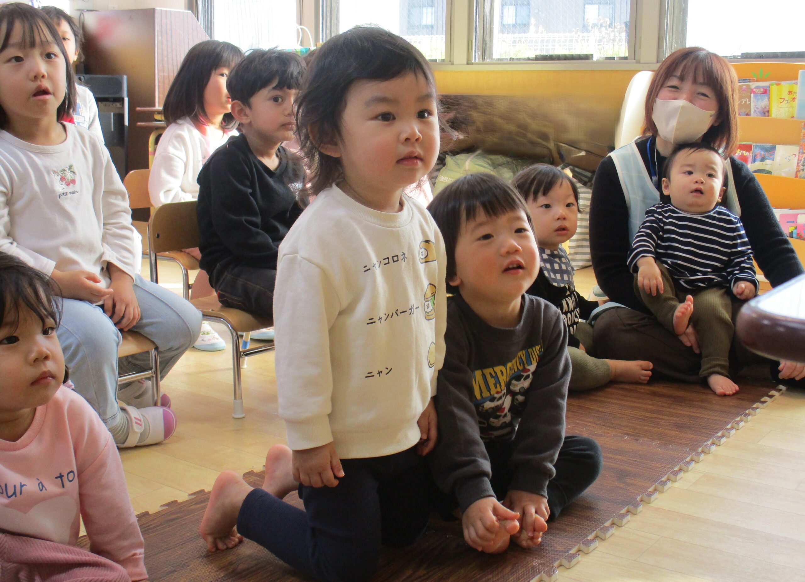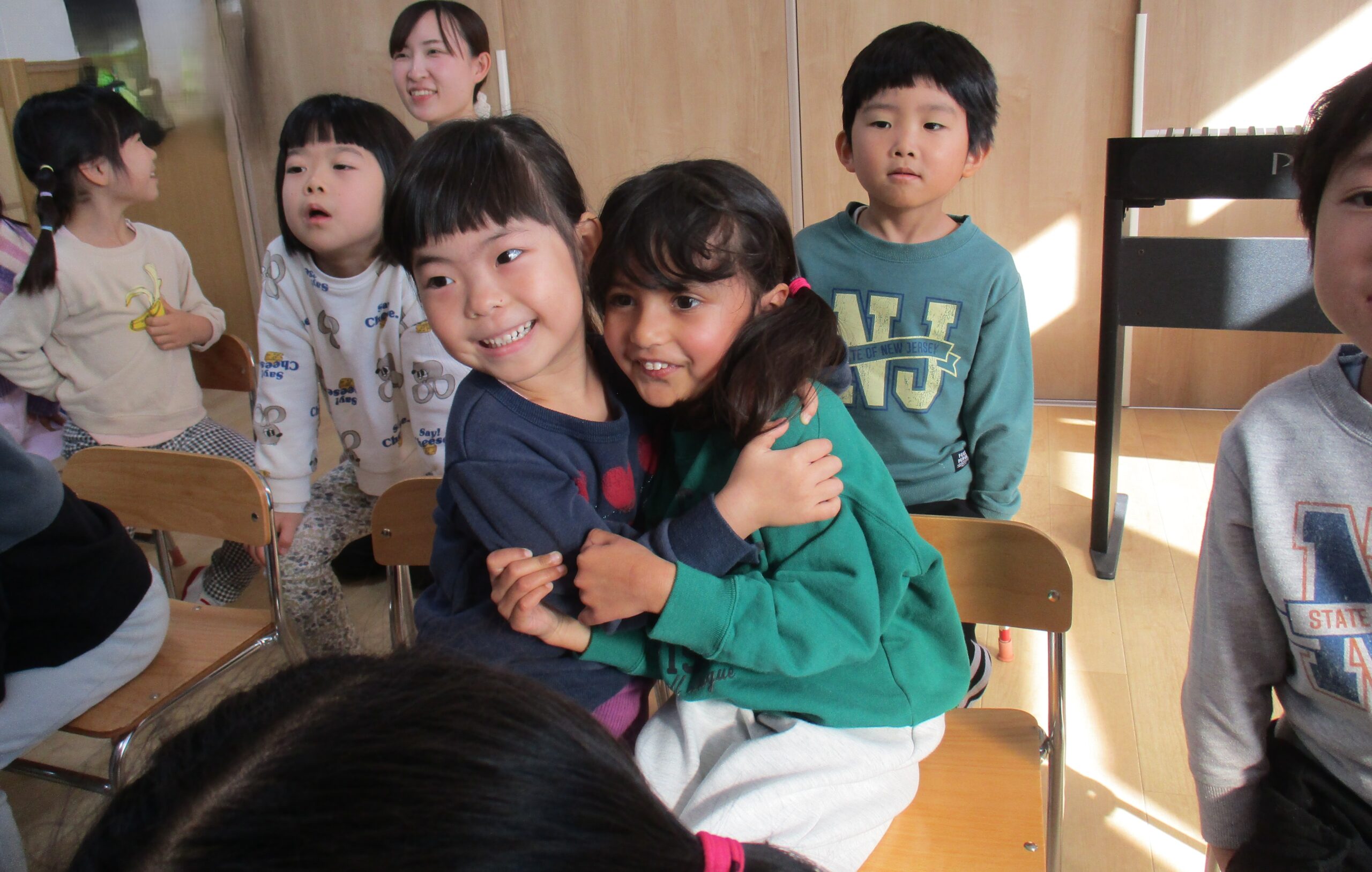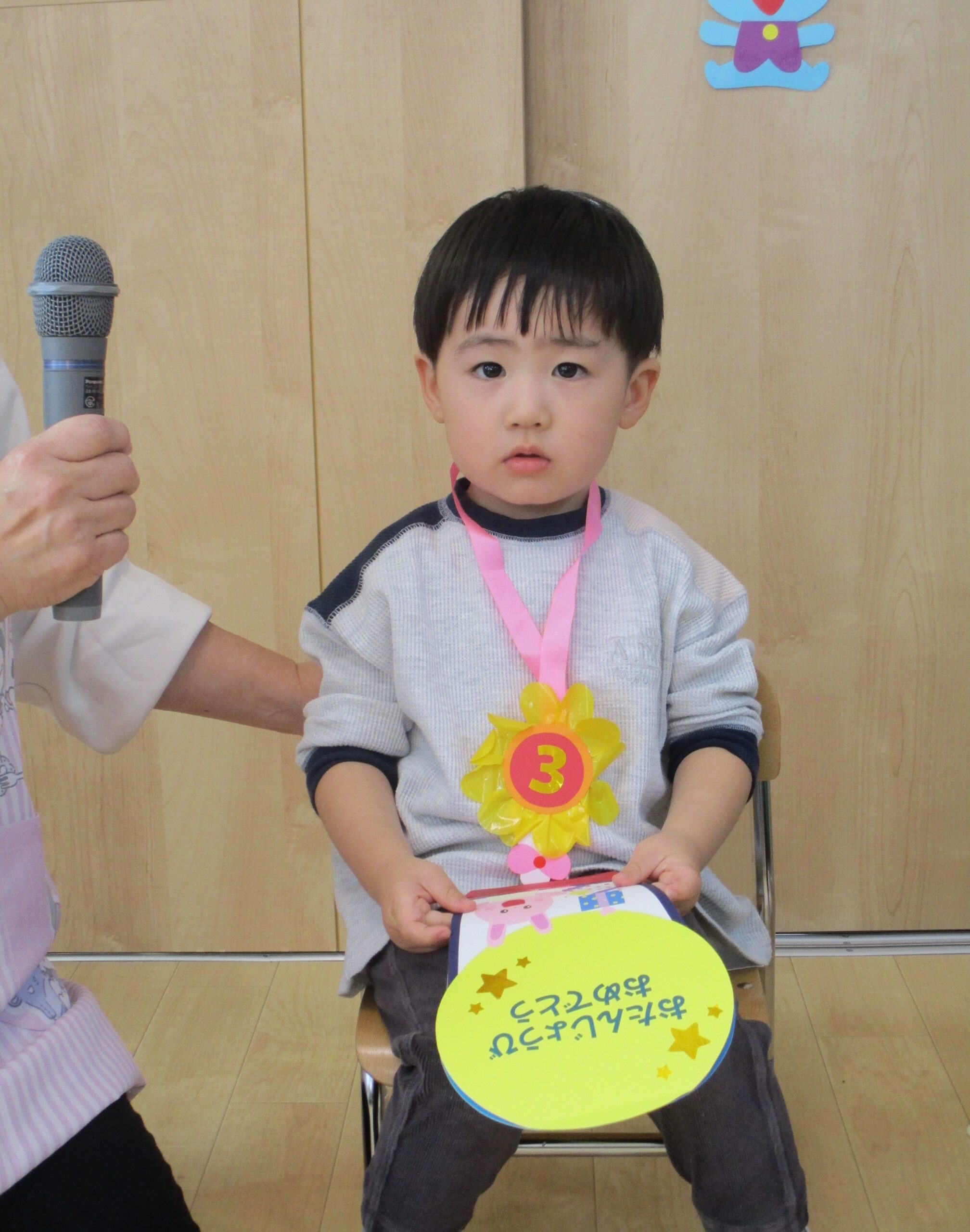 12月は5名のお友だちが誕生日を迎えました。好きな食べ物、遊び、将来の夢をインタビューされ、立派に答えていました。先生からのプレゼントは「ぷっくりシアター」でした。