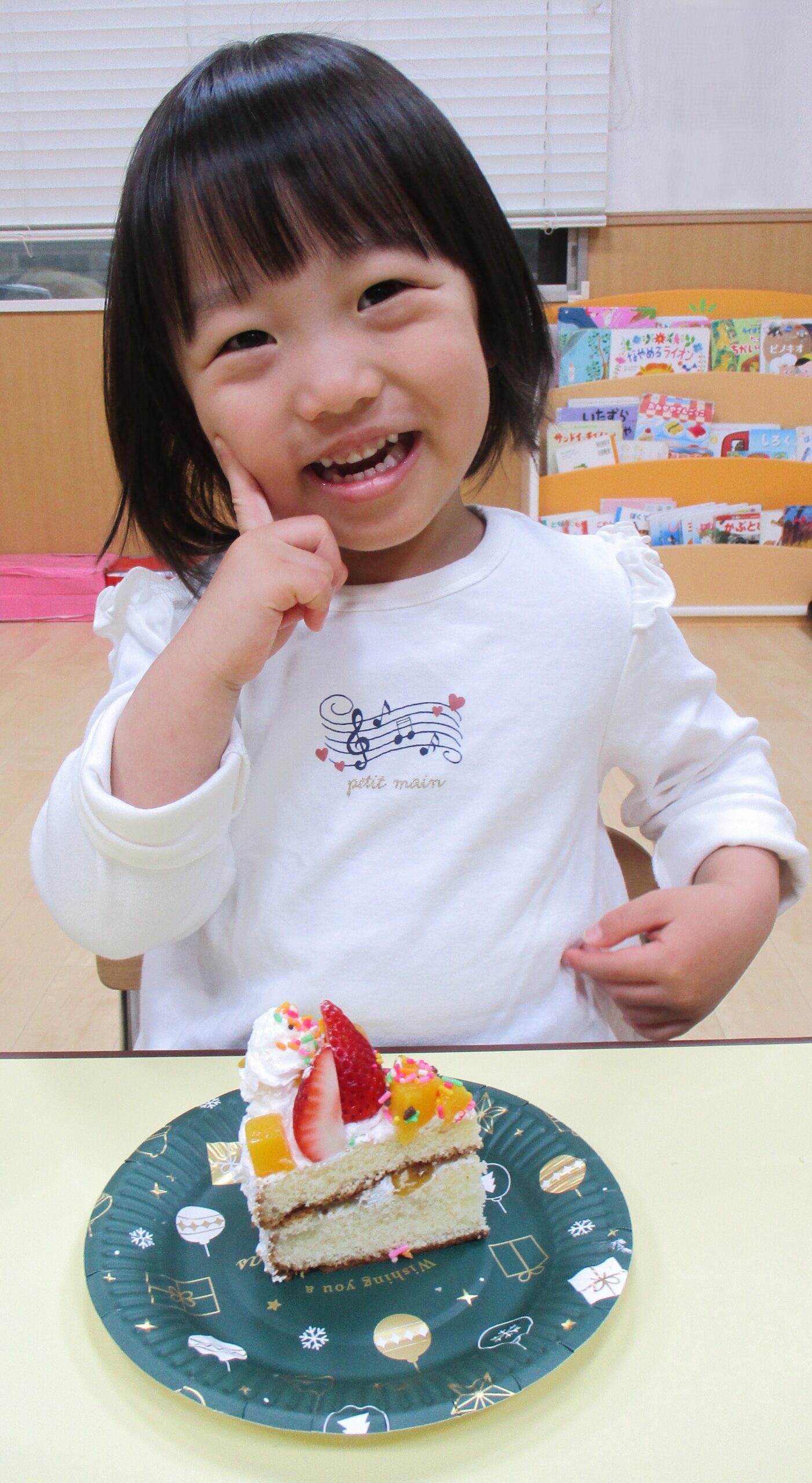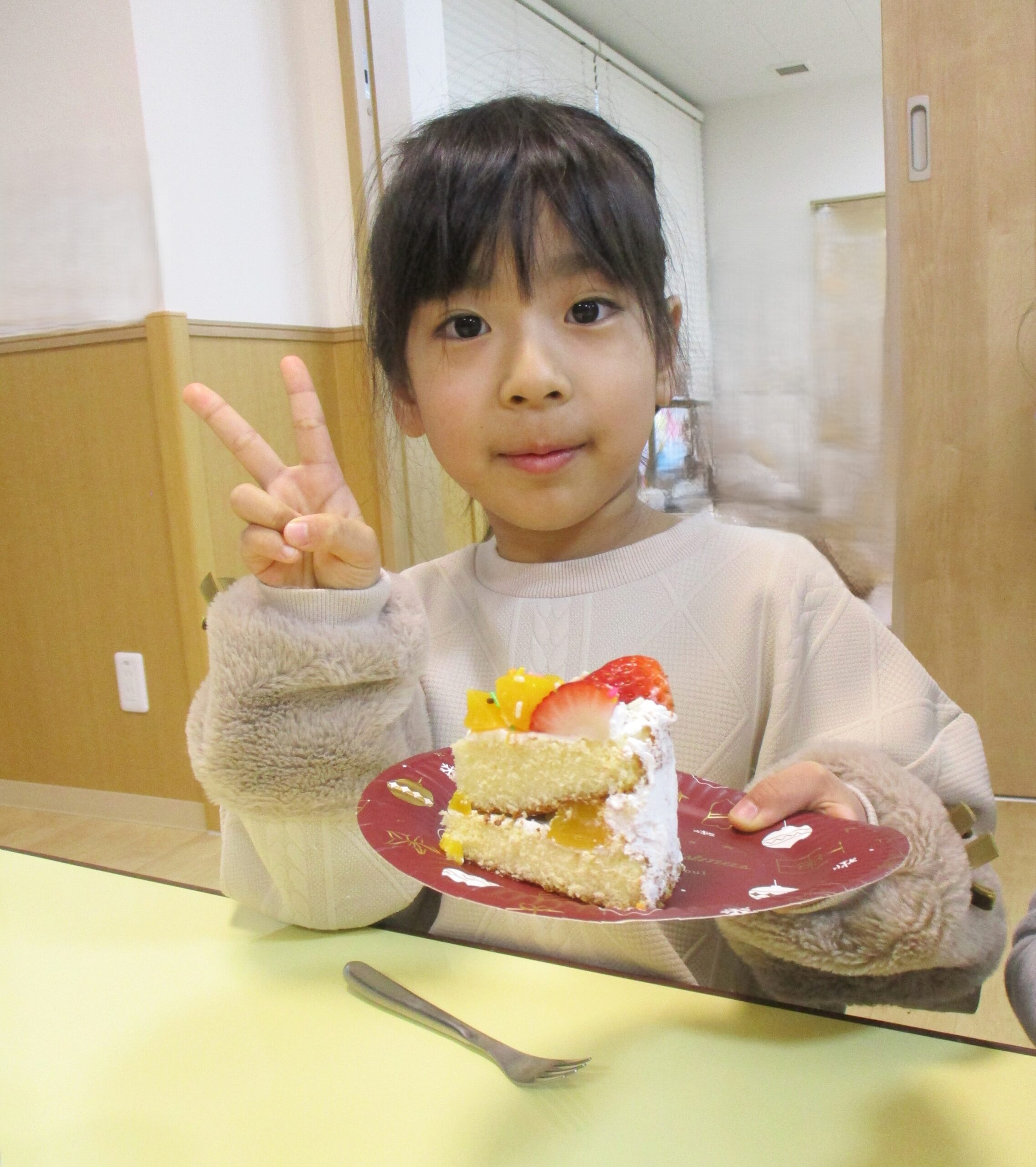 美味しそうにできたクリスマスケーキを目の前にして、みんな嬉しそう!午後のおやつでいただきました。