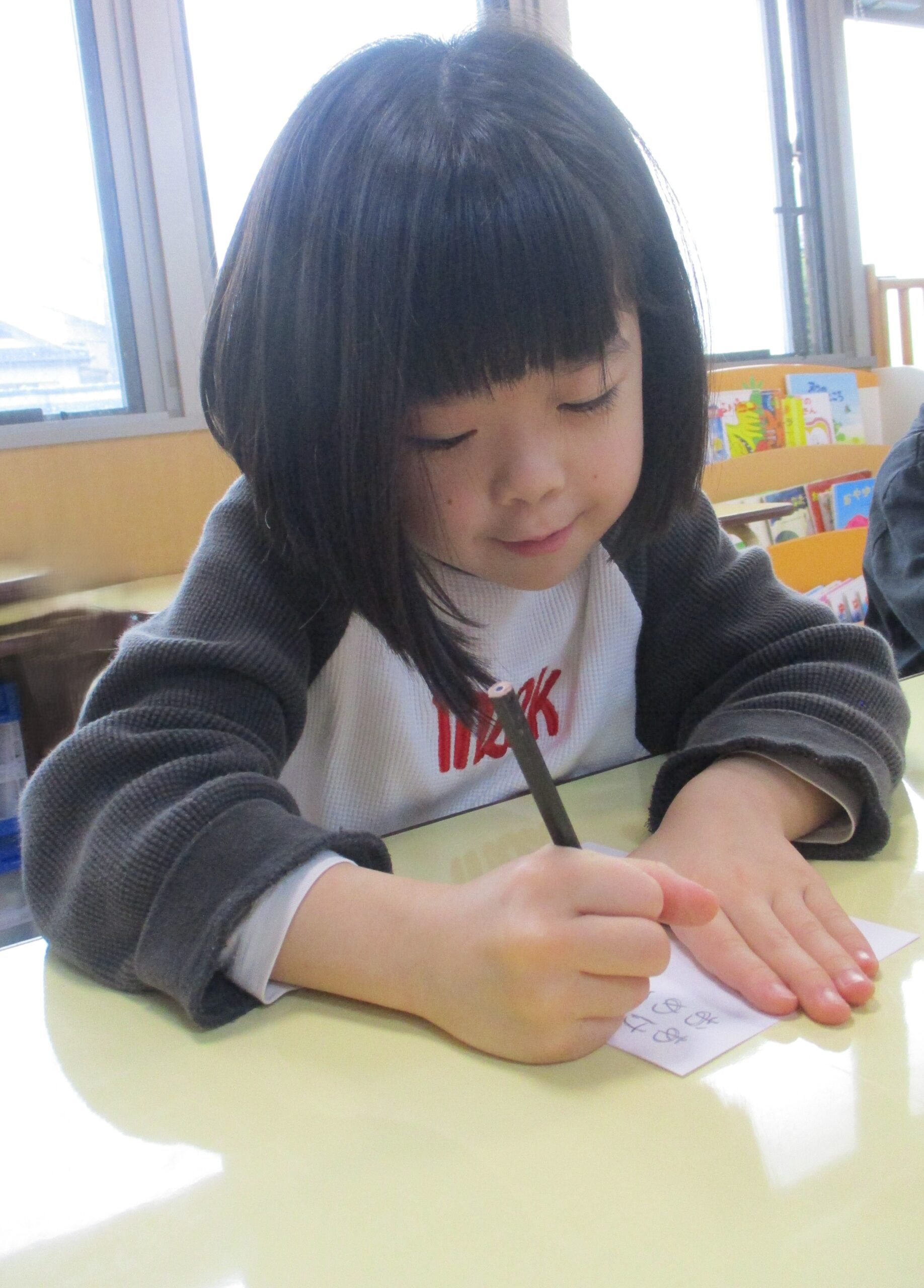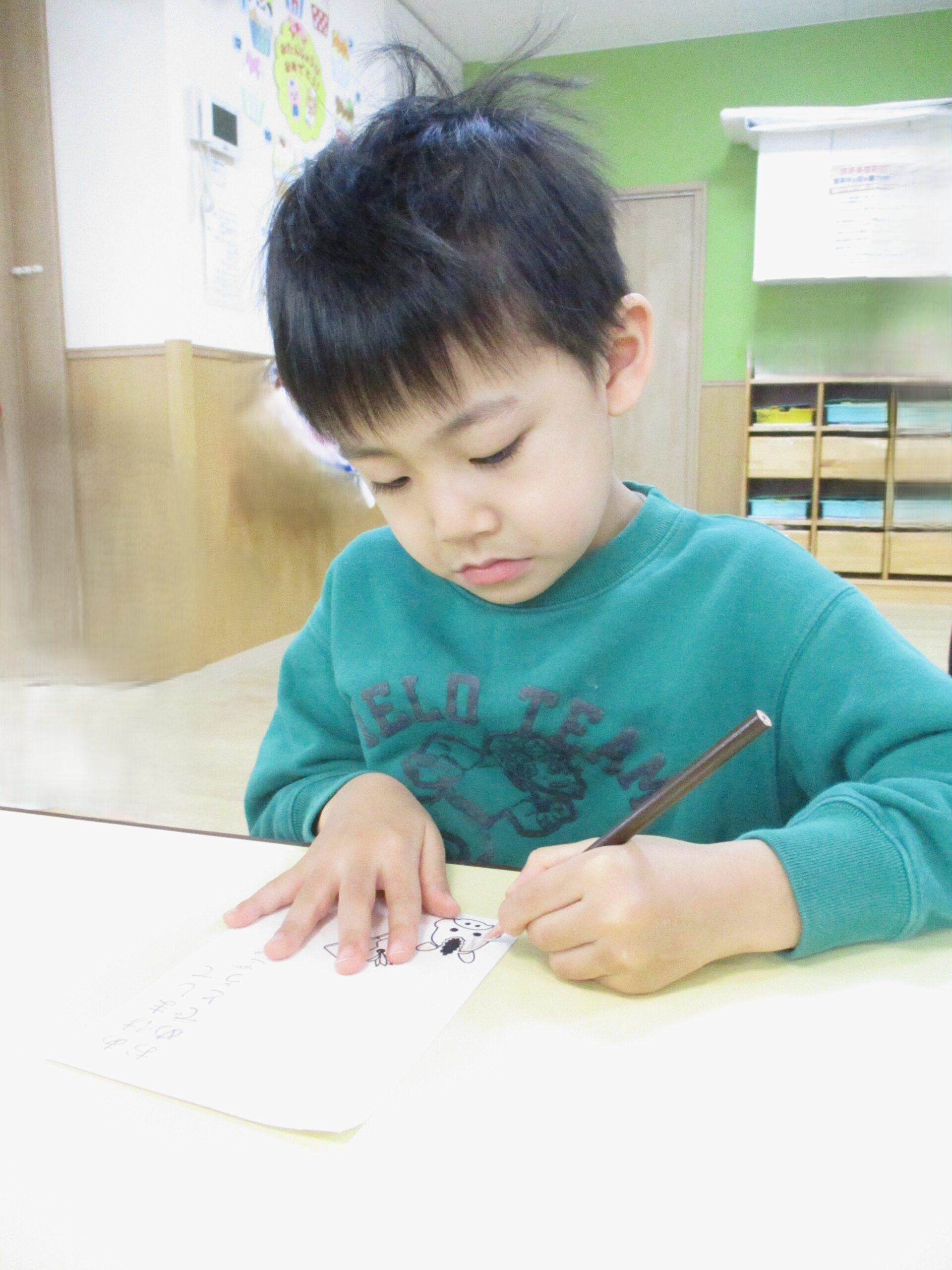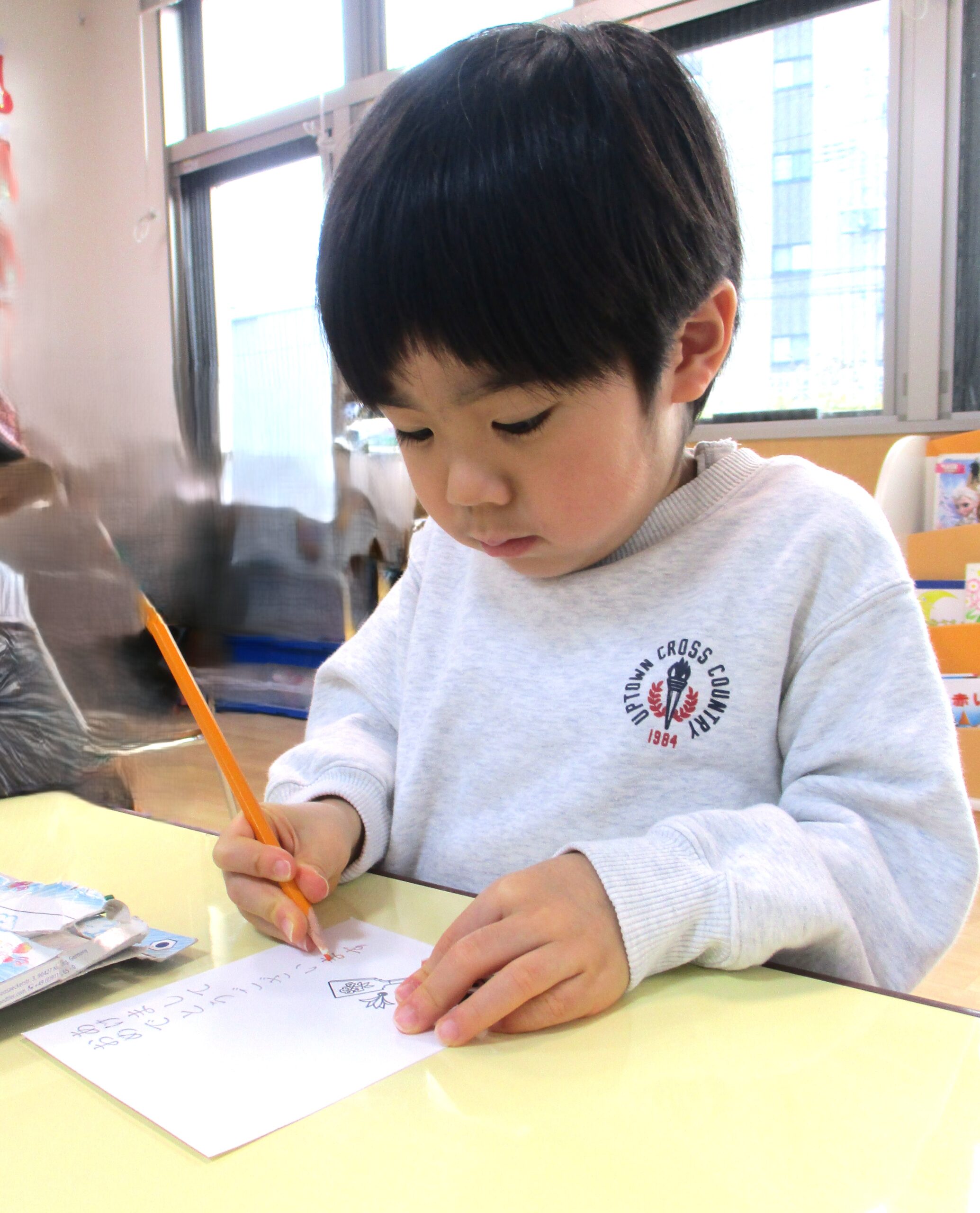 4・5歳児クラスは、お友だちと年賀状の書き合いをしました。新年の挨拶や、お友だちへの一言をじっくり考えながら丁寧に書いていました。